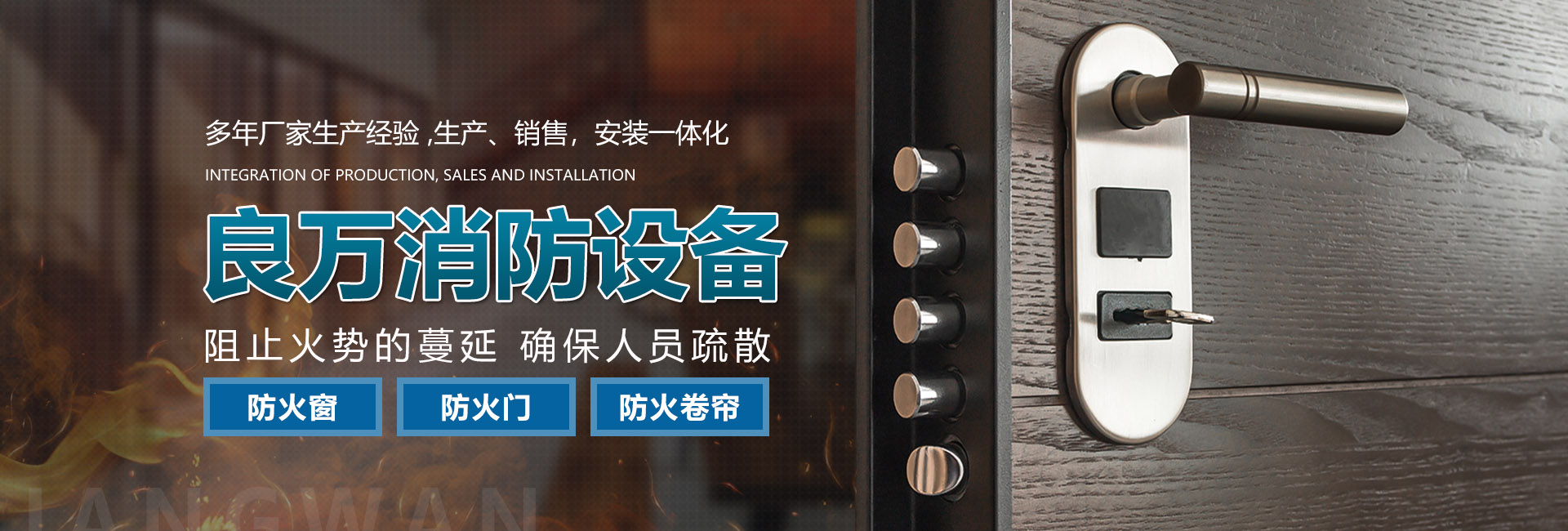 關于我們合肥良萬消防設備有限公司位于合肥市包河工業園,生產銷售安裝:防火門、防火卷簾門、防火窗等消防安全產品。公司具有研發、設計、生產、銷售、及安裝服務的綜合配套能力。合肥良萬消防設備有限公司技術力量強,設備齊全,產品不斷創新,以信譽立業,客戶滿意是我們永無止境的追求。我們在保證產品質量的同時,也十分注重售后服務,保證消防安全產品的正常運行。公司始終堅持誠信為本的企業宗旨,真誠希望與社會各界新老客戶精誠合作,良萬愿與您攜手共創輝煌!